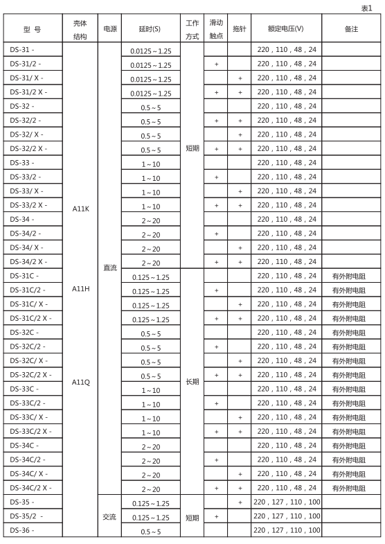 對(duì)于交流短時(shí)工作的: DS-35 , DS-36 , DS-37 , DS-38不大于20VA。