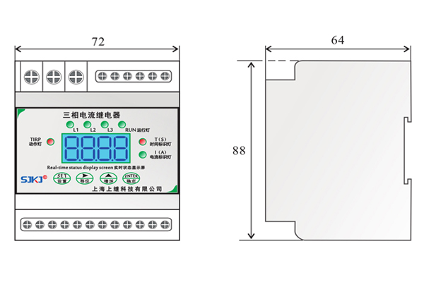 , 無數(shù)值顯示。繼電器達到所設(shè)定值,動作后,由TIRP動作燈會點亮,實際線路電流低于或高于所設(shè)定的返回值,指示燈切換回來。正常運行情況下,RUN運行燈、電流設(shè)置表示燈常亮。L1、L2、L3來回切換運行。當輸入電流任意一相滿足動作條件,繼電器動作,電流標識燈熄滅,表示延時時間已到動作。當輸入接近動作條件時,繼電器進入動作預(yù)備狀態(tài),所有芯片資源用來計算輸入值,一旦滿足條件,立即啟動計時,繼電器設(shè)有啟動量連續(xù)判斷功能和突變量連續(xù)判斷功能,能夠有效迅速的判斷輸入值,并躲過短時干擾。