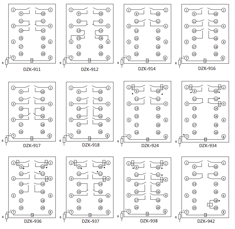 DZK-917快速中間繼電器內(nèi)線接線及外引接線圖(正視圖)